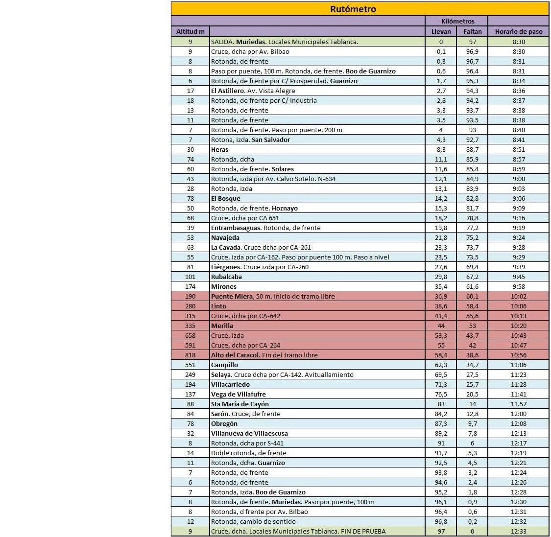 Recorrido = Puente Arce-Barreda-Qu​ijas-Treceño-La Cocina-Cueva del Soplao-Puente Larrudo-Panes-H​ermida- HOZ – OZAL​BA – CLLO. CARMONA -S. Cipriano-Zurita