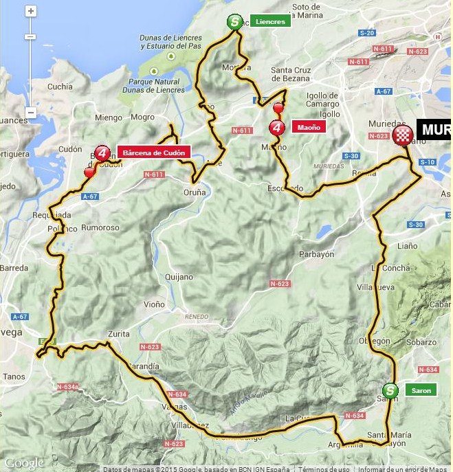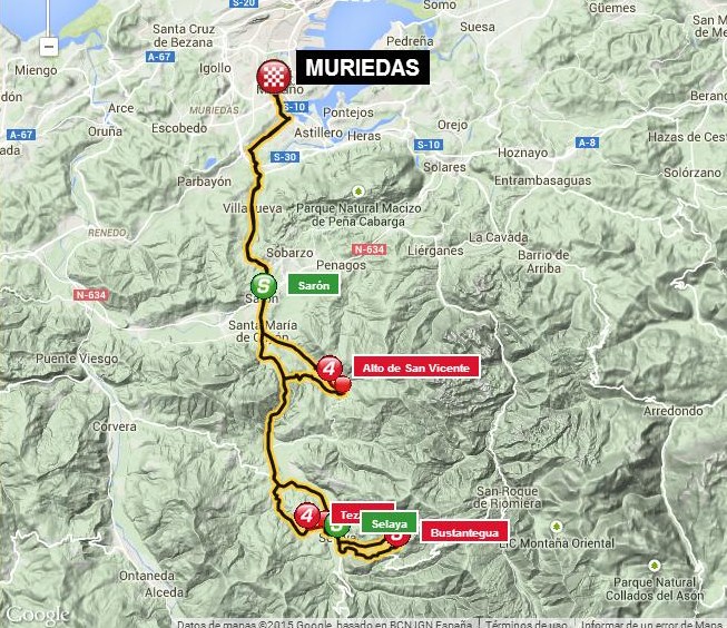 Guarnizo – Sarón – Selaya – Valvanuz – Bustantegua – Selaya – Tezanos – Santibañez – Vega – Ruda – Esles – Alto San Vicente – Sarón – Guarnizo