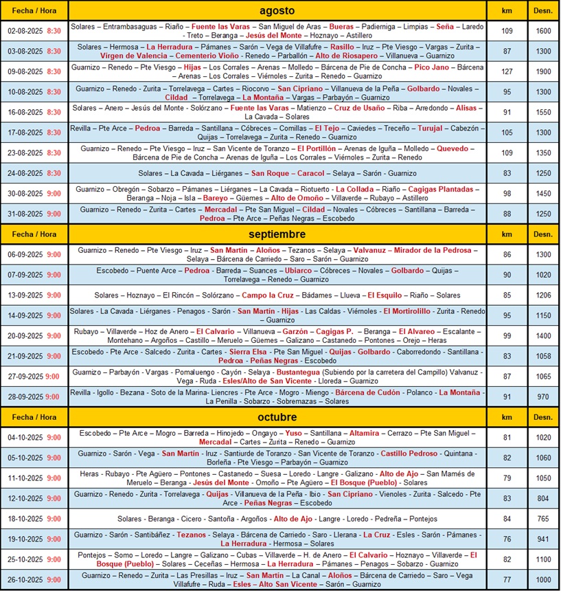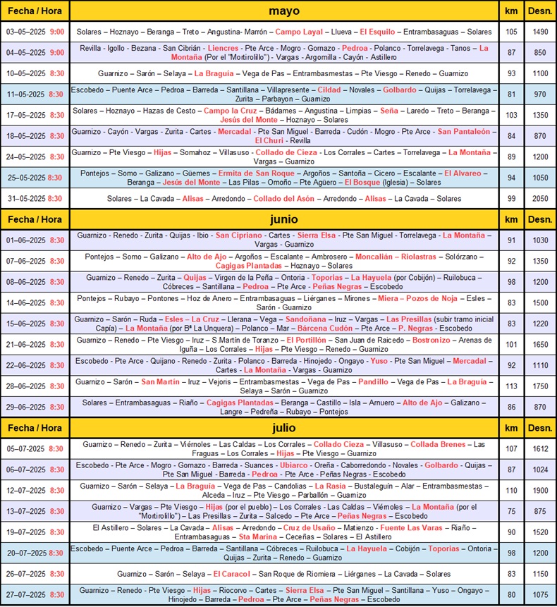2025 5 abril, 201928 julio, 2025 / Cicloturistas Camargo Sprint / Deja un comentario Salidas realizadas 2025 Mayo – Julio 2025 Agosto – Octubre 2025